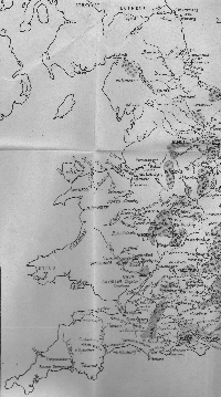 The map shows Heversham's select status as one of the few named places recorded in the North West during the Dark Ages. Please click on the image to enlarge |
